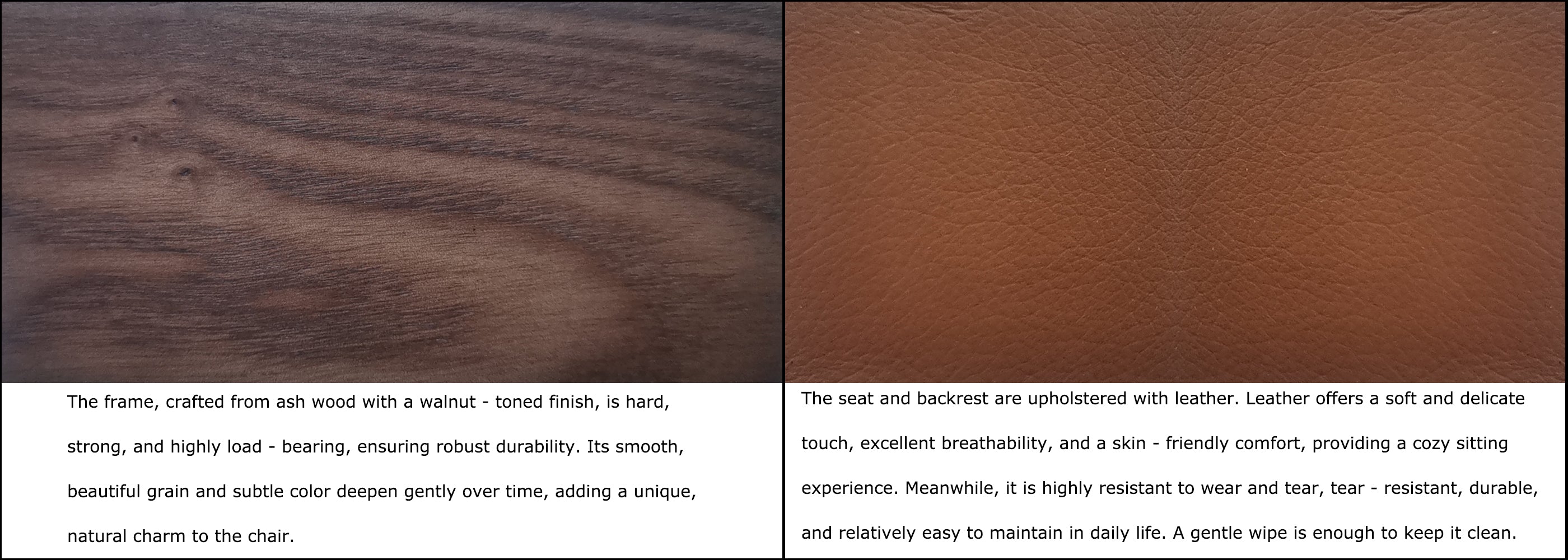 Ash Wood:The frame is made of North American ash wood. It's hard - textured, high - strength, and excellent in load - bearing capacity, ensuring the chair's stability and durability. With its beautiful texture and light color, it develops a unique charm over time, showcasing the beauty of nature.